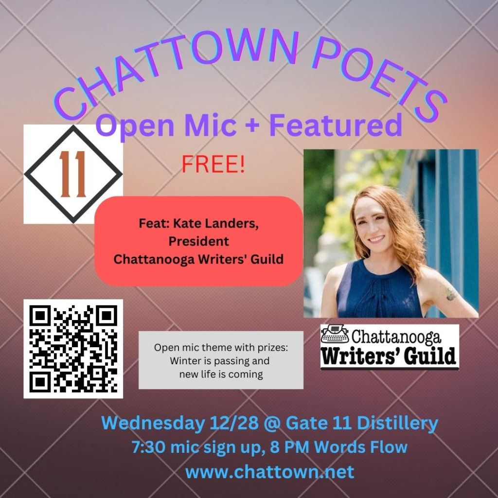 December 28 Open Mic: Featured writer is Kate Landers, President of the Chattanooga Writers’ Guild.
